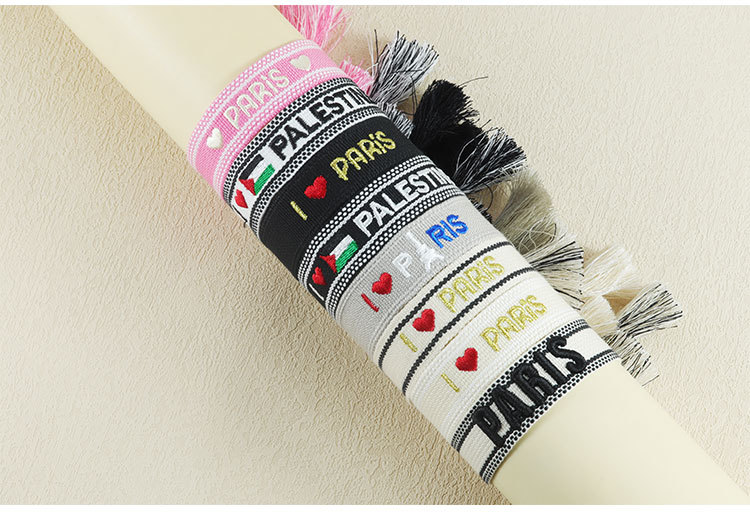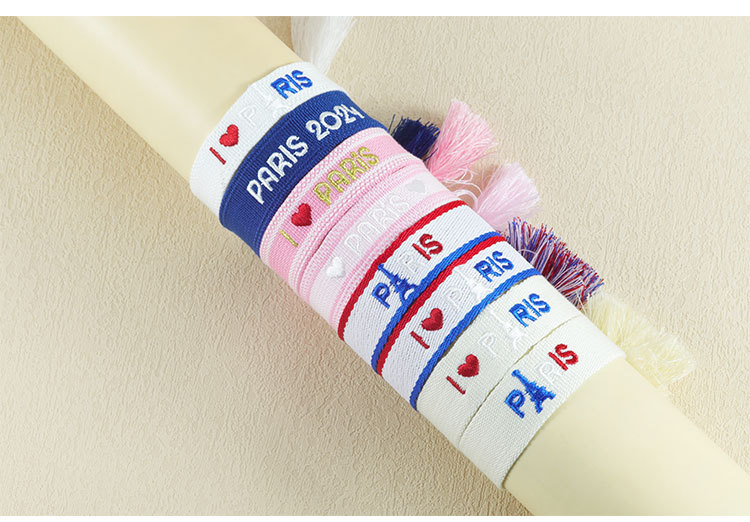 Embroidered Eiffel Tower ethnic style woven ribbon wrist strap Paris Sports Games wristband souvenir from France